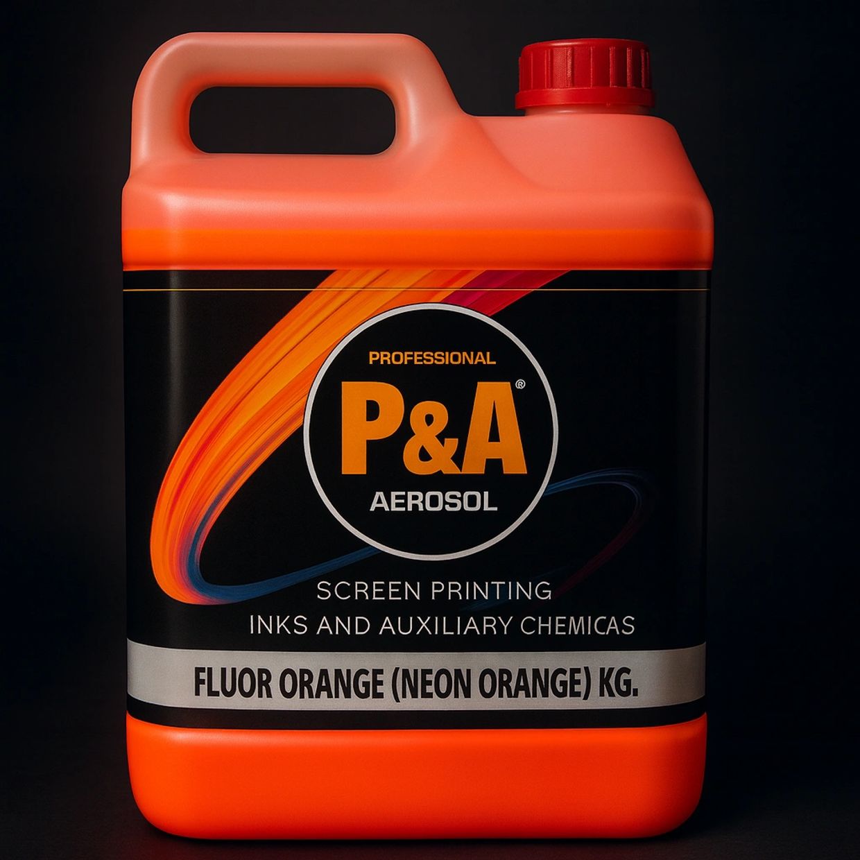 High-visibility neon orange screen-printing ink. Provides strong color brightness, smooth application, and durable performance on textile fabrics. Available in all standard and special colors.